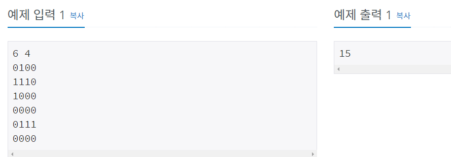 N×M의 행렬로 표현되는 맵이 있다. 맵에서 0은 이동할 수 있는 곳을 나타내고, 1은 이동할 수 없는 벽이 있는 곳을 나타낸다. 당신은 (1, 1)에서 (N, M)의 위치까지 이동하려 하는데, 이때 최단 경로로 이동하려 한다. 최단경로는 맵에서 가장 적은 개수의 칸을 지나는 경로를 말하는데, 이때 시작하는 칸과 끝나는 칸도 포함해서 센다.