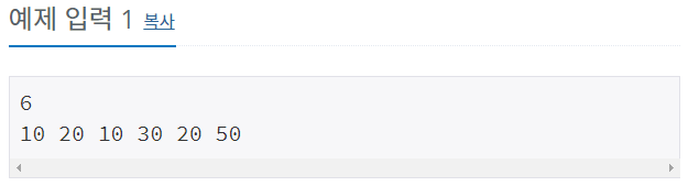 둘째 줄에는 수열 A를 이루고 있는 Ai가 주어진다. (1 ≤ Ai ≤ 1,000,000)