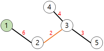 아래에서 초록색은 시작점이고 주황색은 우리가 확인해야하는 간선이다.